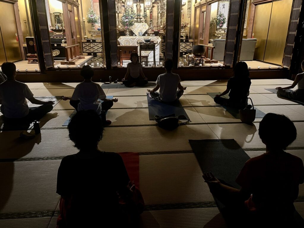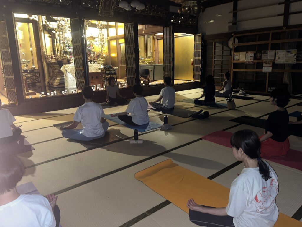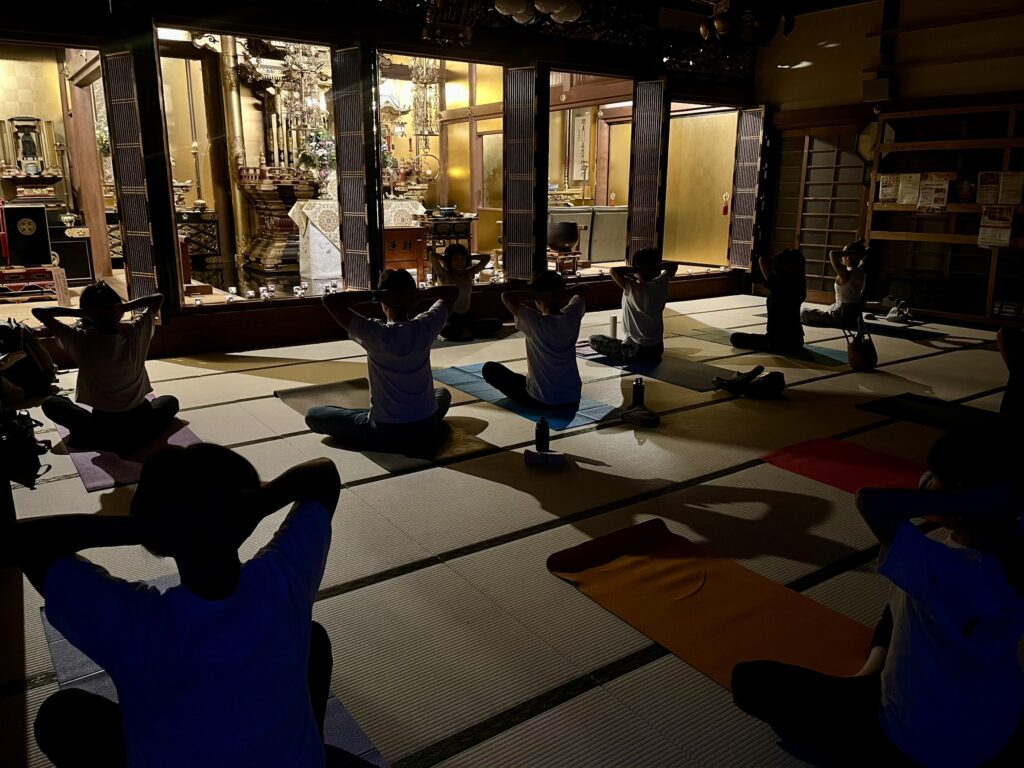 眞照寺では皆さんで体を動かすヨガや、ピラティスを開催しています。
